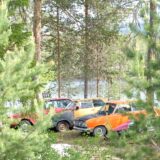 Morgens in Kiruna erlebte ich eine Überraschung – es hatte geschneit. Das Frühstück war übersichtlich, aber es reichte um gestärkt aufzubrechen. Von Kiruna ging es auf dem Inlandsvägen durch Schweden immer der E45 entlang. Die Strecke war wenig abwechselungsreich – nur wenige Ortschaften, wenig Verkehr, viel Wald, mal eine gerodete Fläche, ab und zu Wiesen oder mal ein See. Noch anstrengender war jedoch die vergleichsweise eintönige Strassenführung. Ich dachte zwischendurch schon ich hätte mich im Land geirrt. Strassen die bis zum Horizont verlaufen.