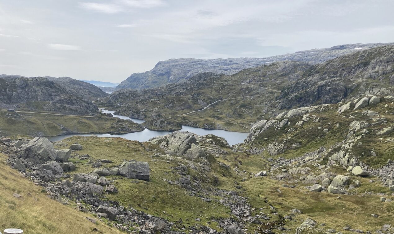 In Håra biege ich endlich von der Europastrasse ab und fahre auf die FV520. Die Strecke wird wieder spannender. Es gibt Serpentien und Engstellen. Die Landschaft ist wieder schroff und geht in Fjell über. Es macht wieder Spaß zu fahren. Es dauert nicht lange, dass ich anhalte und wieder die Drohne hochschicke: