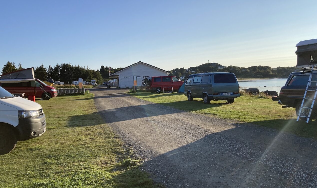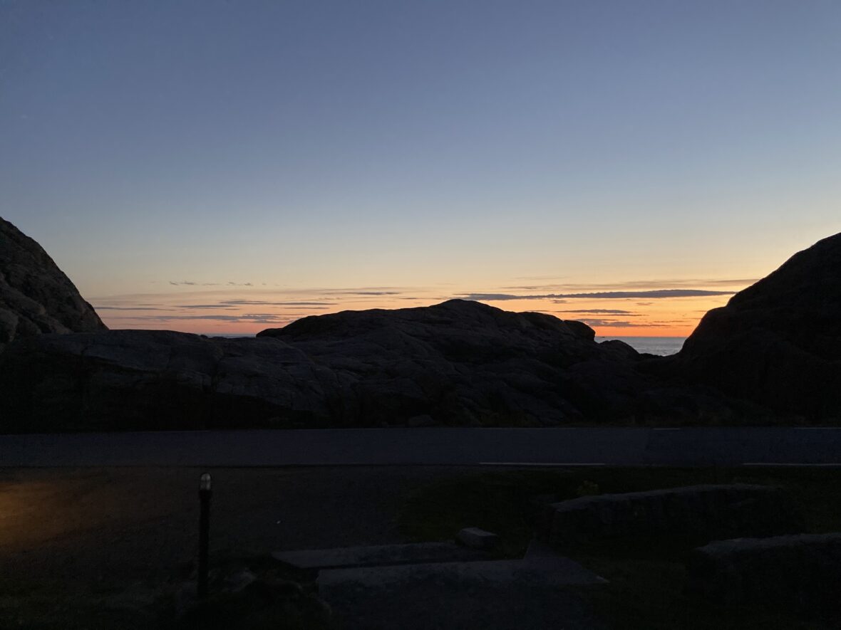 Vom Fort aus geht es nach Lindesnes Fyr. Auch hier war ich schon, aber der Parkplatz ist angenehm für eine Nacht und das Wetter ist halt besser. Vor Ort komme ich ins Gespräch mit einem Kastenwagenfahrer und wir stehen stundenlang – umschwärmt von kleinen Fliegen – bei absoluter Windstelle an einem der sturmreichsten Orte Norwegens. Irgendwann sind die Insekten nicht mehr auszuhalten und wir verziehen uns in die Autos. Die restlichen Bilder des Tages: