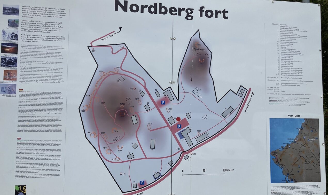 Hinter Flekkefjord fährt man kurz auf die E39, welche man zum Glück über die FV465 schnell wieder verlassen kann. Die Strecke führt mich an die Küste. Dort besuche ich das Nordberg Fort – ein weiterer Teil des Atlantikwalls: