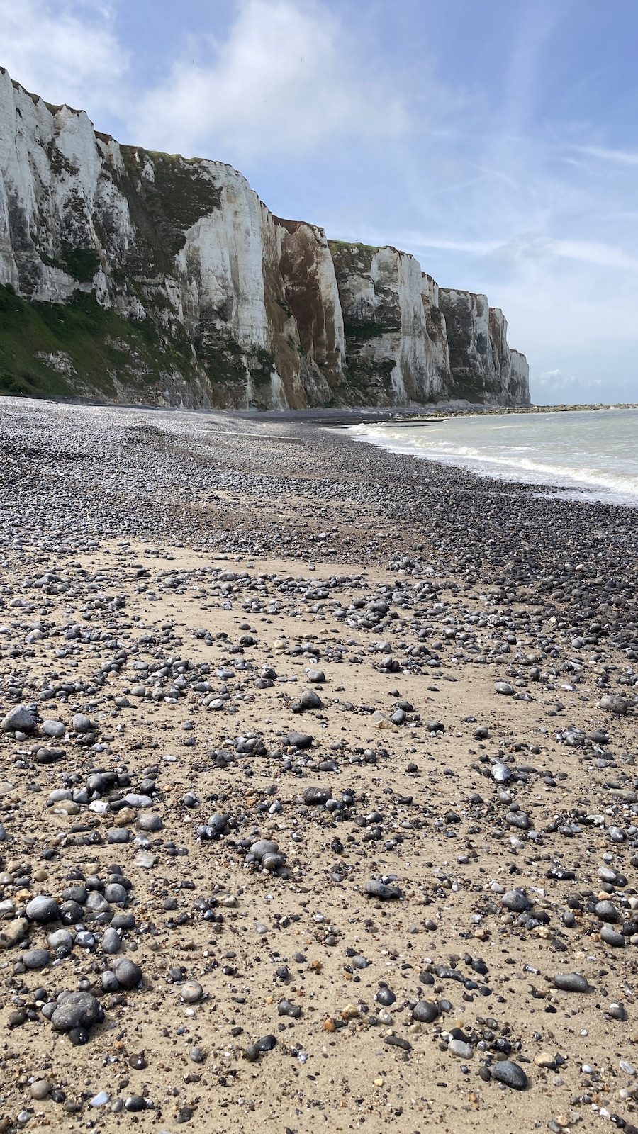 Etwas weiter folge ich Wegweisern nach Bois de Cise. Im Ort treffe ich auf größere Besuchergruppen, welche den Ort besichtigen. Einen großen Unterschied zu anderen Orten kann ich nicht feststellen und konzentriere mich eher auf die beeindruckende Steilküste. Man kommt allerdings im Ort nicht direkt ans Wasser. Mit etwas Abstand zur Abbruchkante endet der Weg, also kehre ich zu Rico zurück und fahre weiter. Nur ein kurzes Stück weiter geht das in Le Tréport problemlos: