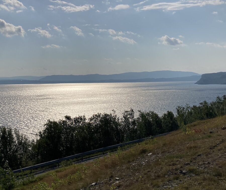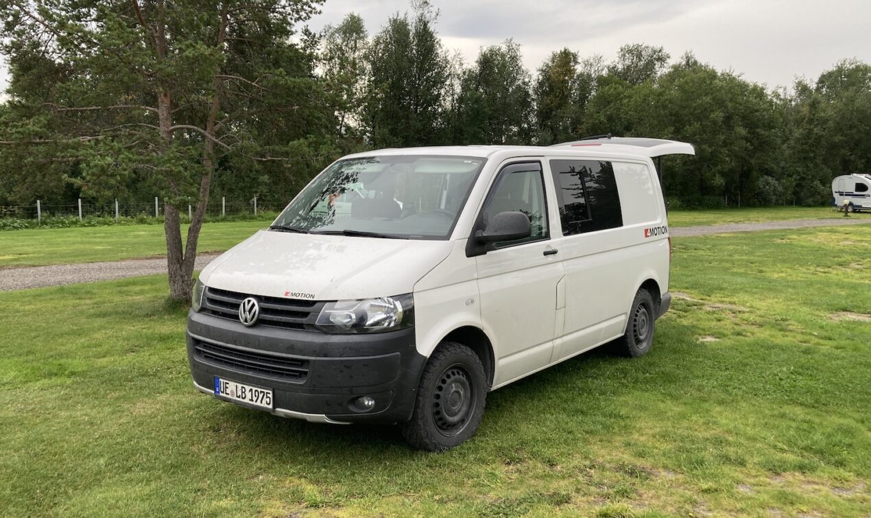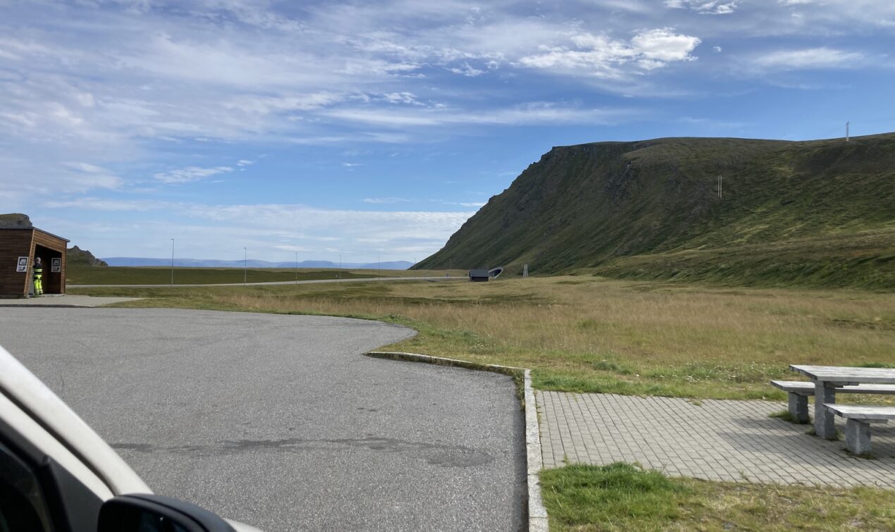 Vom Rastplatz in Nordschweden aus geht es weiter. Um 10:30 überquere ich den Polarkreis. Die Straßen sind inzwischen nur noch zweispurig. Ich biege nach Finnland ab. Ich war bisher noch nicht in Finnland. Da ich einiges über extreme Bussgelder gehört habe achte ich deutlich mehr auf mein Tempo. Die Strecke durch Finnland ist nicht besonders lang. Ca. zwei Stunden späte überquere ich die finnisch-norwegische Grenze. Der Grenzübergang ist nicht besetzt und die Straße ist schmal. Im nächsten Ort halte ich bei einer Tankstelle an, um Scheibenklar zu kaufen. Die Waschanlage ist leer und braucht dringend Nachschub. Die E45 führt über eine kurvige Strecke und Norwegen zeigt sich von seiner besten Seite. Kurz vor Alta geht es über eine einspurige Straße durch einen Gebirgszug. Im Sandwich zweier Sattelzüge geht es um die Kurven. Ich bin mal wieder voller Respekt für die Fahrkünste skandinavischer Trucker. Jeder Bremspunkt sitzt und es wird nur so viel wie nötig gebremst. Kurz vor Alta, lässt mich der LKW ziehen und ich fahre zum Campingplatz in Alta. Ich fülle meine Wasserreserven auf und gehe duschen. Es ist schön mal wieder richtige Sanitäranlagen zu haben.