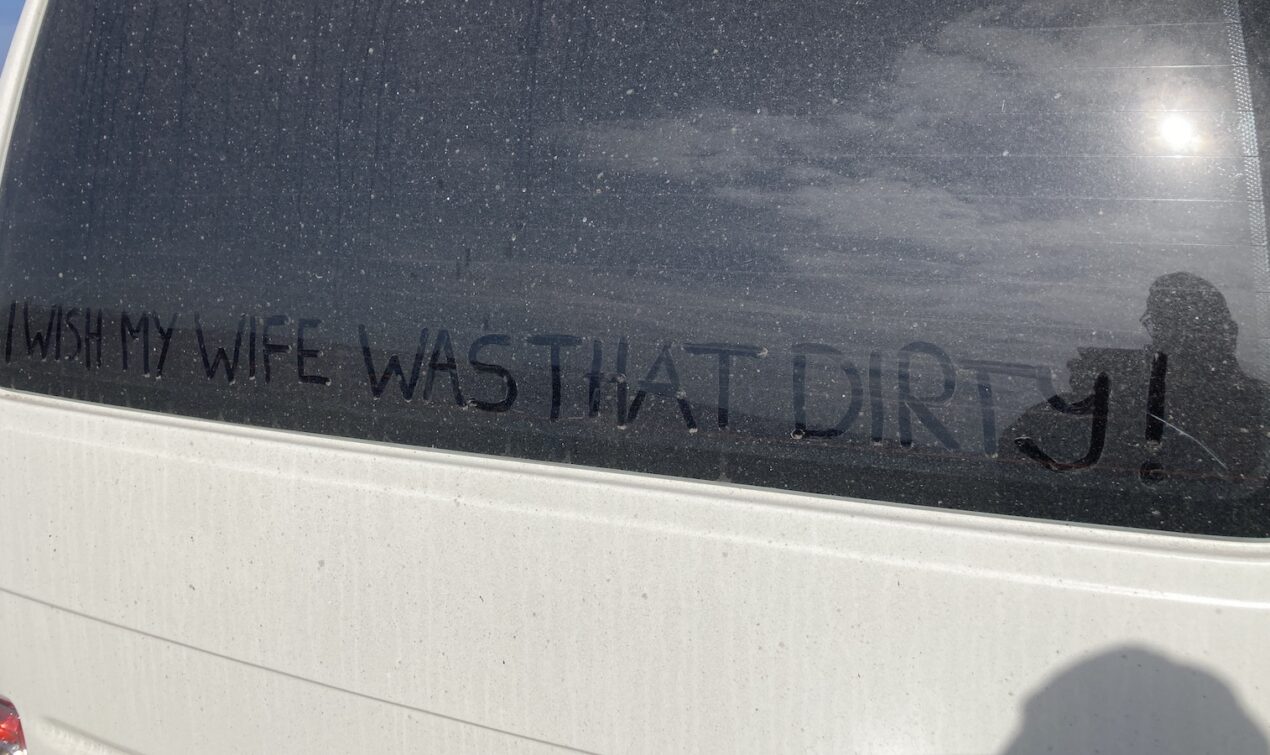 Abends geht die Sichtweite auf dem Parkplatz immer weiter runter. Tipp für andere Reisende: Wenn ihr nicht in das Restaurant oder den Souvenirladen wollt, spart euch die Eintrittsgebühr. Auf dem Parkplatz gibt es ein Toilettenhaus und ihr dürft 24 Stunden dort bleiben. Am nächsten Morgen ist es sonnig und nahezu windstill. Zeit die Drohne aufsteigen zu lassen: