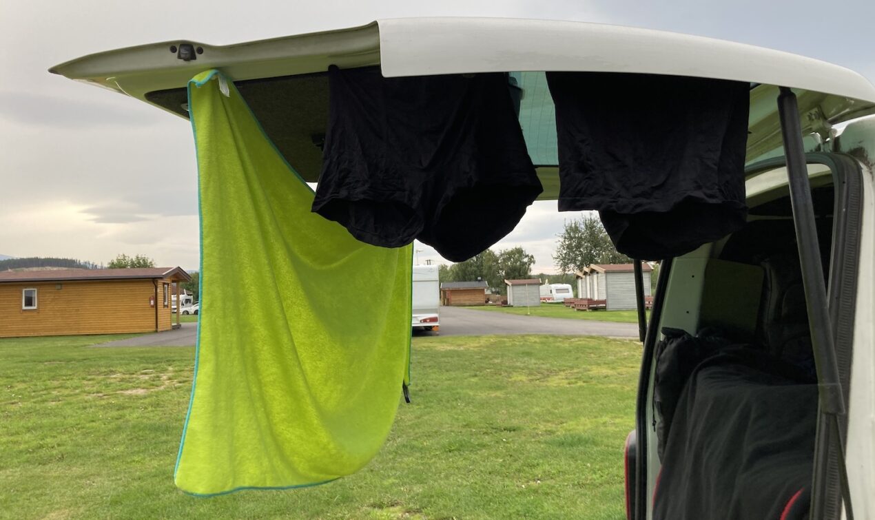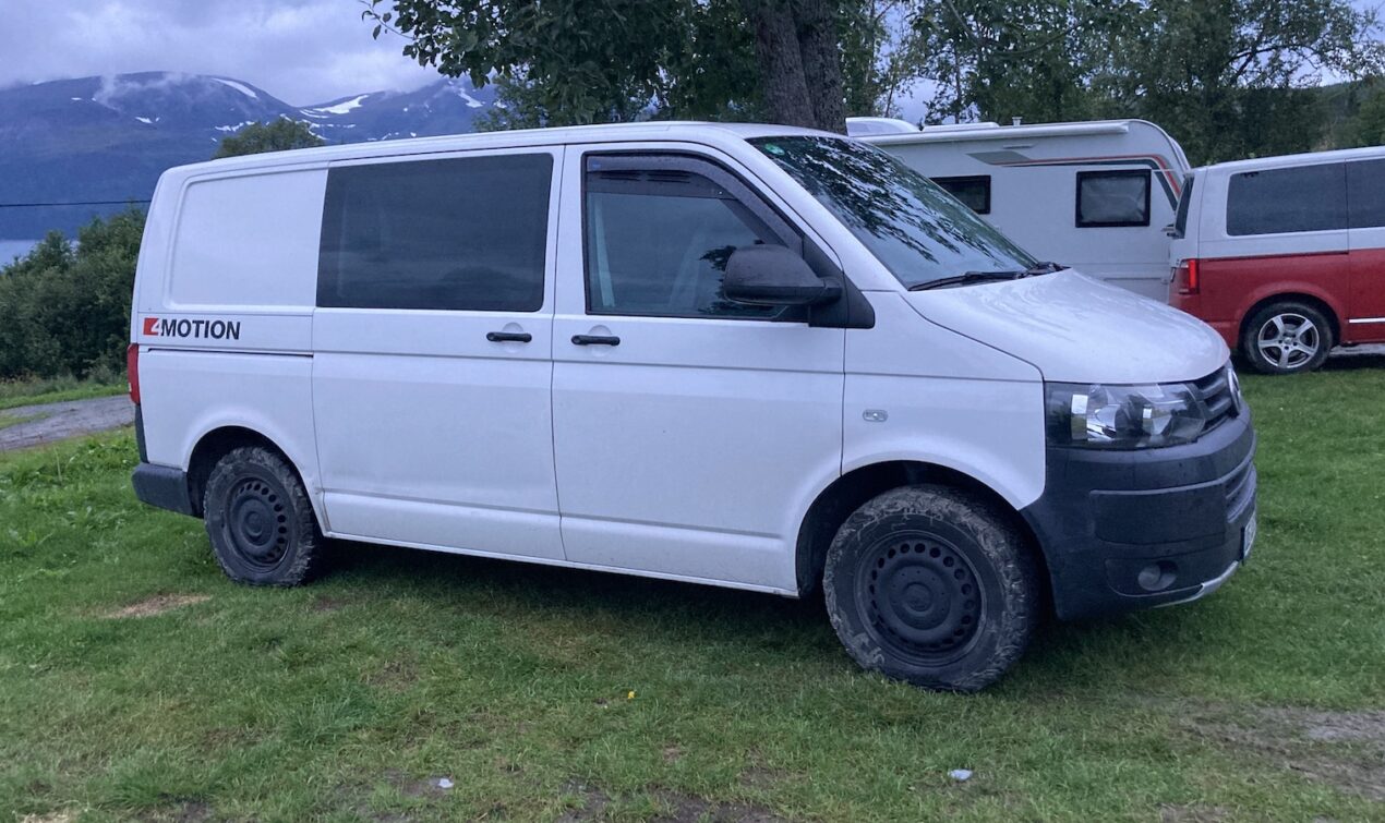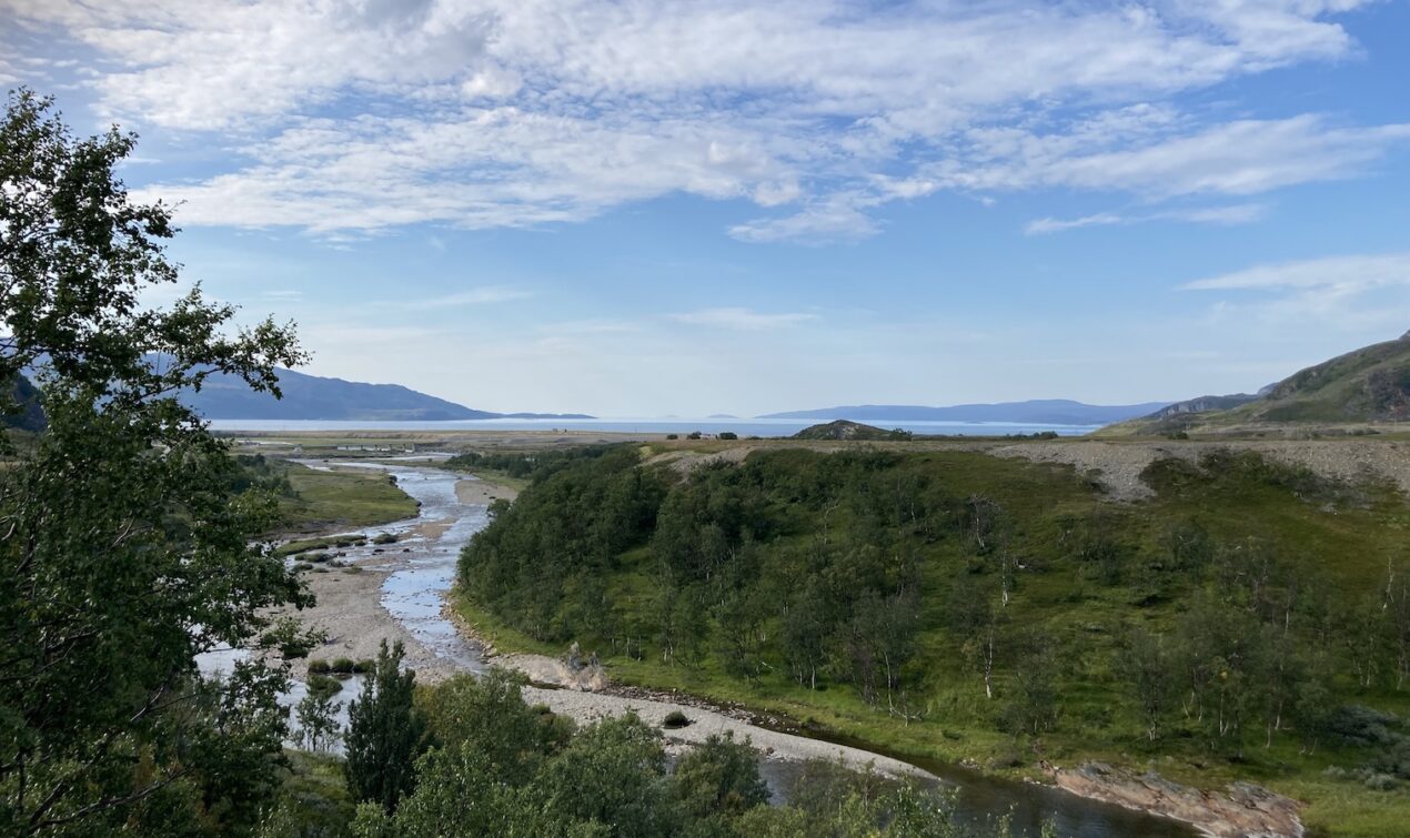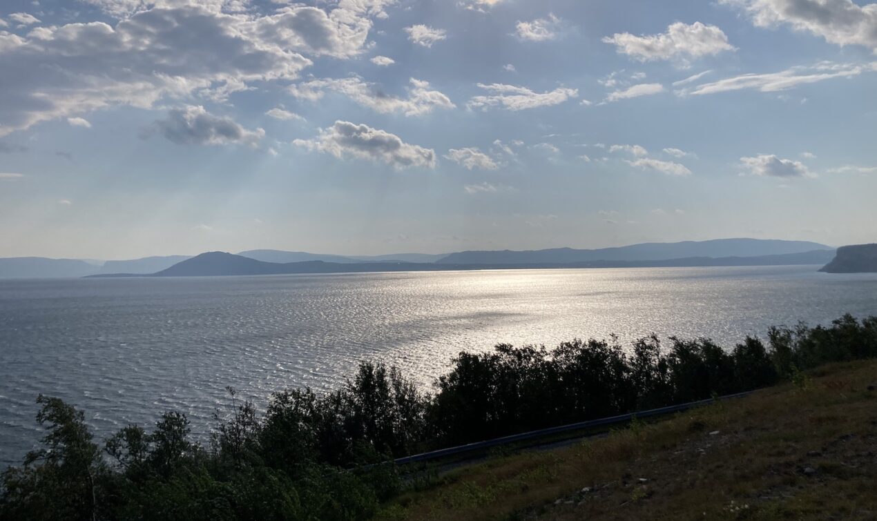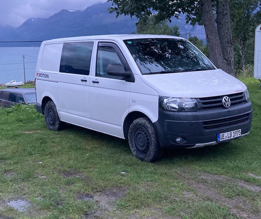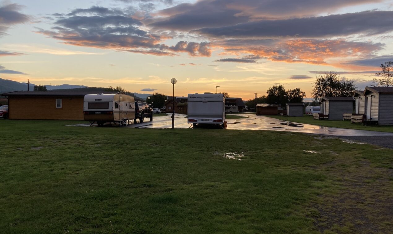 Am nächsten Tag fahre ich von Alta aus nach Westen, grobe Richtung Tromsö. Morgens scheint die Sonne, aber sind viele Wolken am Himmel. Später ist die Sonne dem Regen gewichen. Es regnet teilweise heftig und zwischendurch mache ich längere Zeit auf einem Rastplatz halt. Ich bin unentschlossen und überlege dort zu bleiben. Nach einiger Zeit beschliesse ich doch weiterzufahren. Auf einem Campingplatz mache ich halt und warte den Regen ab. Nach dem Regenschauer komme ich mit Nachbarn auf dem Platz ins Gespräch. Eine Familie mit VW Bus und Wohnwagen. Wir sind stundenlang im Gespräch vertieft.