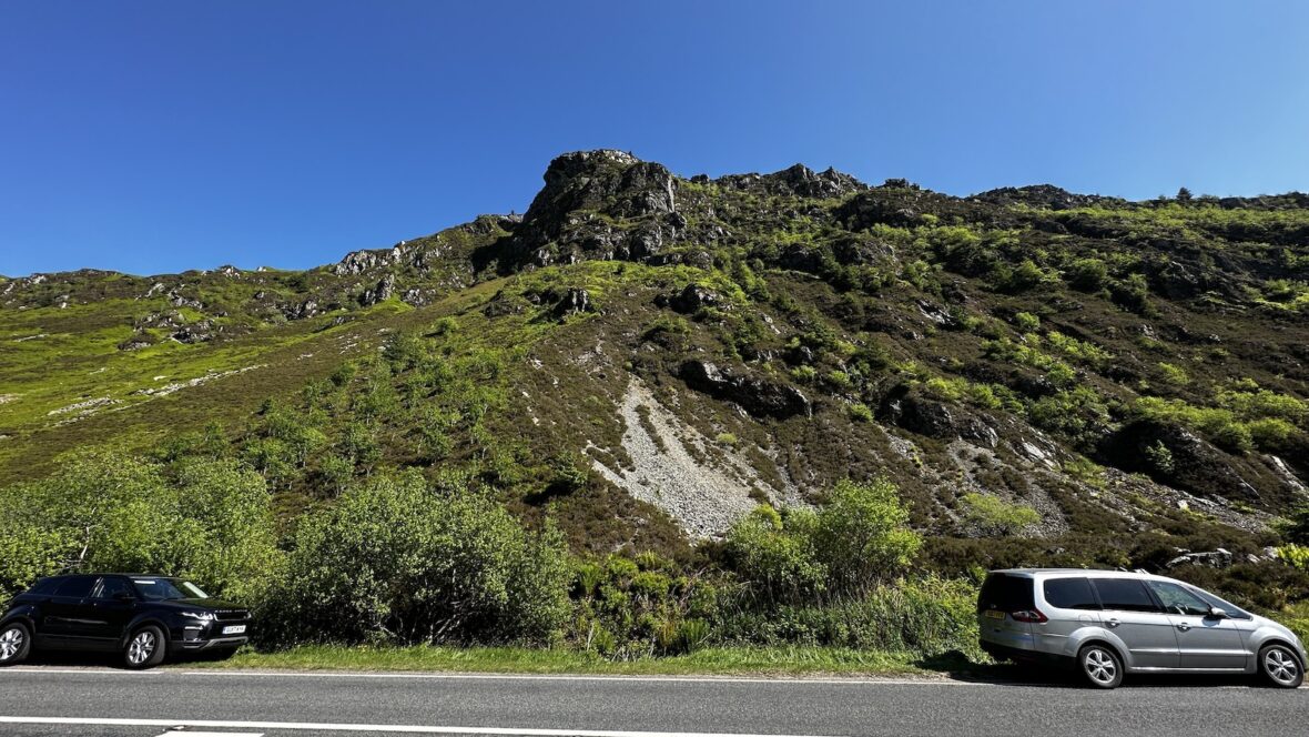 Ich will bis kurz vor Snowdonia fahren. Nach einem mehrere Kilometer dauernden Anstieg halte ich. Ich wähne mich in Norwegen angesichts der schroffen Bergwände links und rechts der Straße. Ich habe Snowdonia erreicht. Einige Wanderer sind die Berge bis ganz nach oben geklettert.