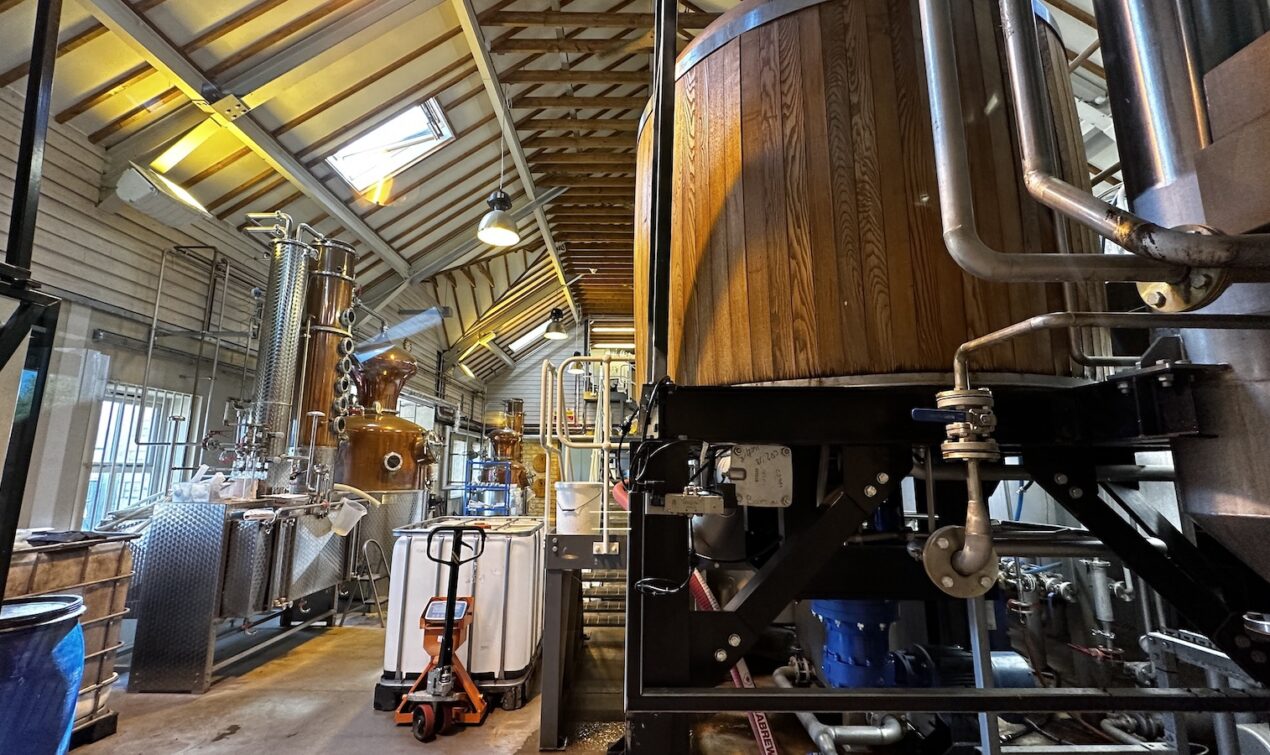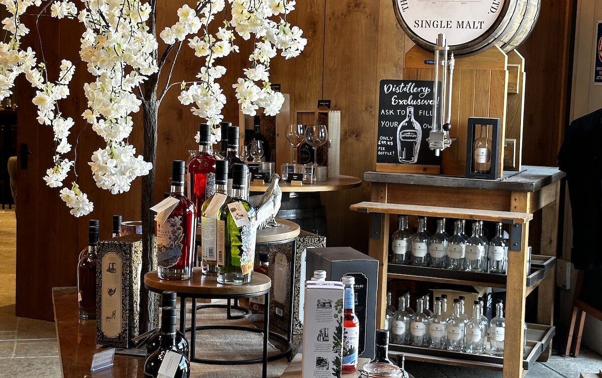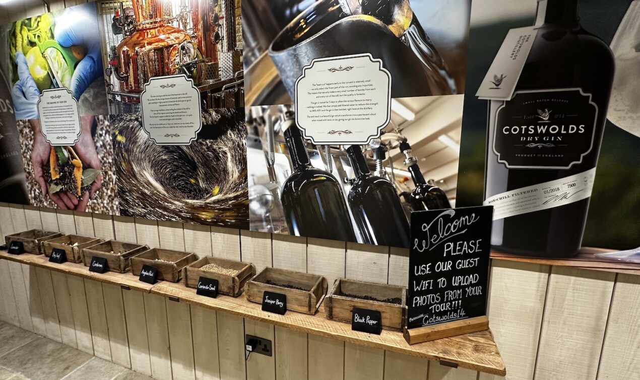 Nach einer Wanderung überlege ich wohin es als Nächstes gehen soll. Es liegen einige Gärten in der Nähe. Da ich jedoch schon einige besichtigt habe steuere ich stattdessen die Cotswolds Distillery an. Dort wird Wishky und Gin produziert. Leider ist die Führung bereits ausgebucht und ich mache Fotos der eigentlichen Anlage durch eine Scheibe vom Cafe aus. Nach einem Cafe schaue ich mir den Laden an und komme ins Gespräch mit Kassiererin und amerikanischen Besuchern.