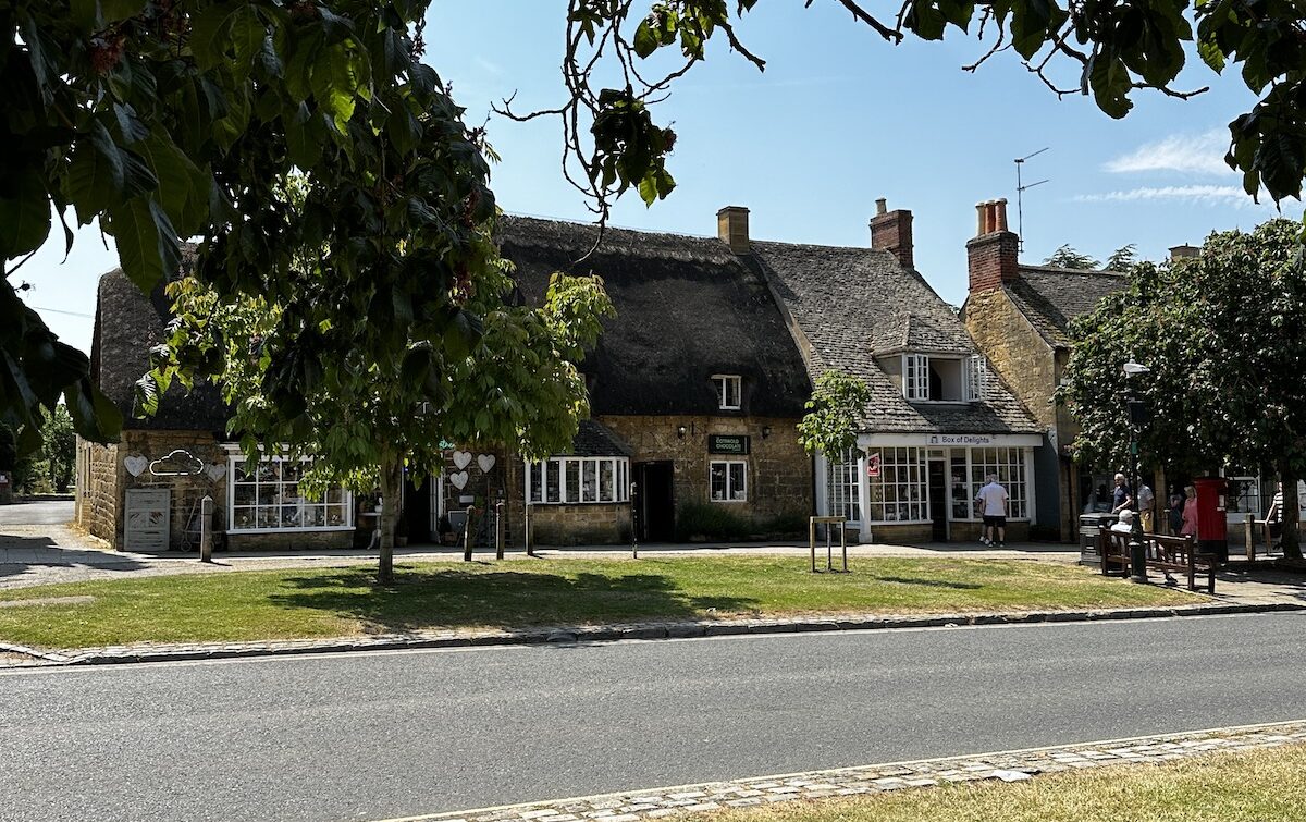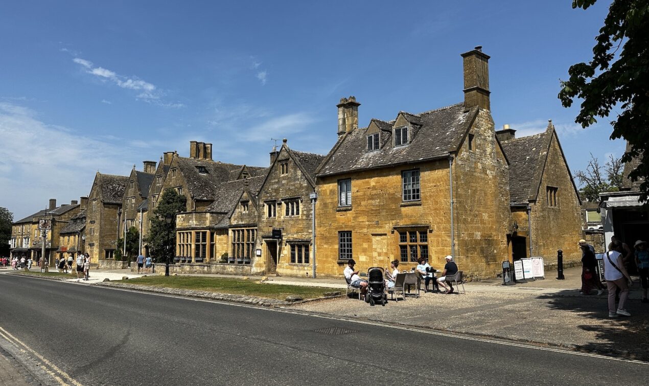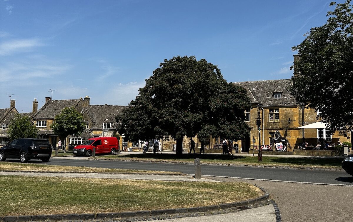 Nach dem Frühstück ging erstmal westwärts nach Broadway. Einem kleinen Dörfchen in den nördlichen Cotswolds. Wie sich herausstellt hat dort gerade ein Kunst- und Kulturfestival begonnen und es ist relativ voll. Nachdem ich einen Parkplatz gefunden habe, bin ich zu einem Spaziergang durch den Ort aufgebrochen. Nachdem ich den einen Teil abgelaufen war bin ich erstmal zurück zum Bus. Gerade mittag und schon unfassbar warm. 30 Grad zeigt das Thermometer am Bus. Nach einer kurzen Pause bin ich aufgebrochen um die zweite Hälfte des Ortes zu erkunden. Der Ort ist im Zentrum vom typischen gelbfarbenen Stein der Cotswolds geprägt und sehenswert. Länger aufhalten will ich mich nicht, es ist einfach zu warm.