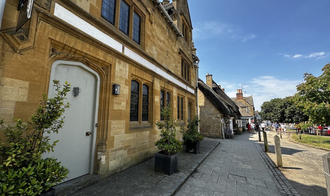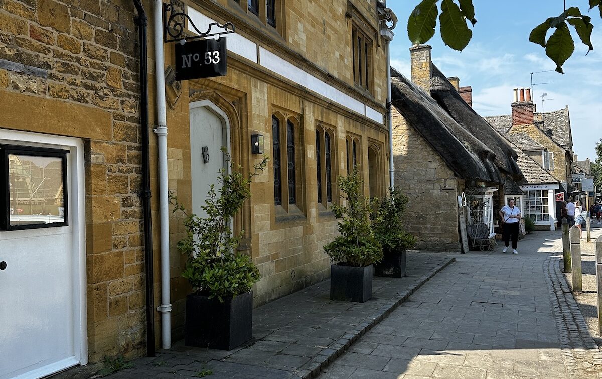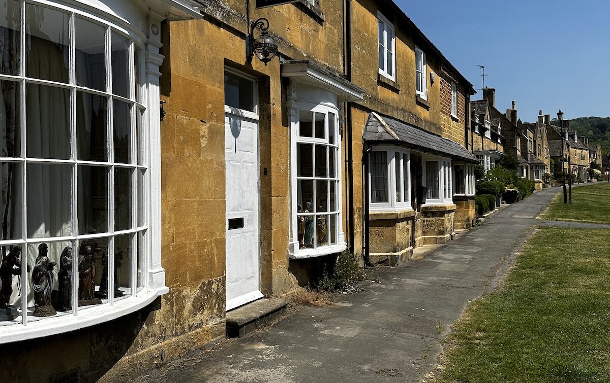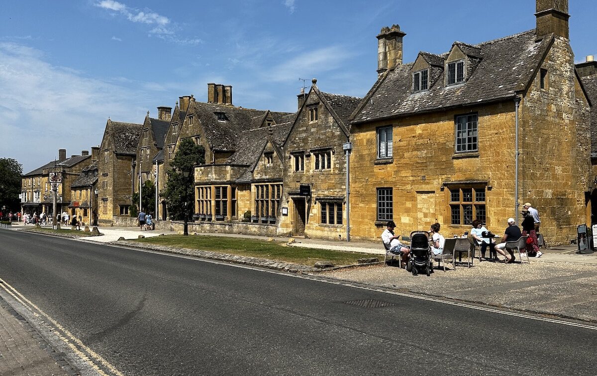 Nach dem Frühstück ging erstmal westwärts nach Broadway. Einem kleinen Dörfchen in den nördlichen Cotswolds. Wie sich herausstellt hat dort gerade ein Kunst- und Kulturfestival begonnen und es ist relativ voll. Nachdem ich einen Parkplatz gefunden habe, bin ich zu einem Spaziergang durch den Ort aufgebrochen. Nachdem ich den einen Teil abgelaufen war bin ich erstmal zurück zum Bus. Gerade mittag und schon unfassbar warm. 30 Grad zeigt das Thermometer am Bus. Nach einer kurzen Pause bin ich aufgebrochen um die zweite Hälfte des Ortes zu erkunden. Der Ort ist im Zentrum vom typischen gelbfarbenen Stein der Cotswolds geprägt und sehenswert. Länger aufhalten will ich mich nicht, es ist einfach zu warm.